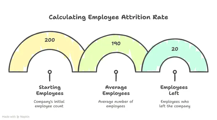 Attrition Rate (%) = (Number of Employees Who Left / Average Number of Employees) x 100