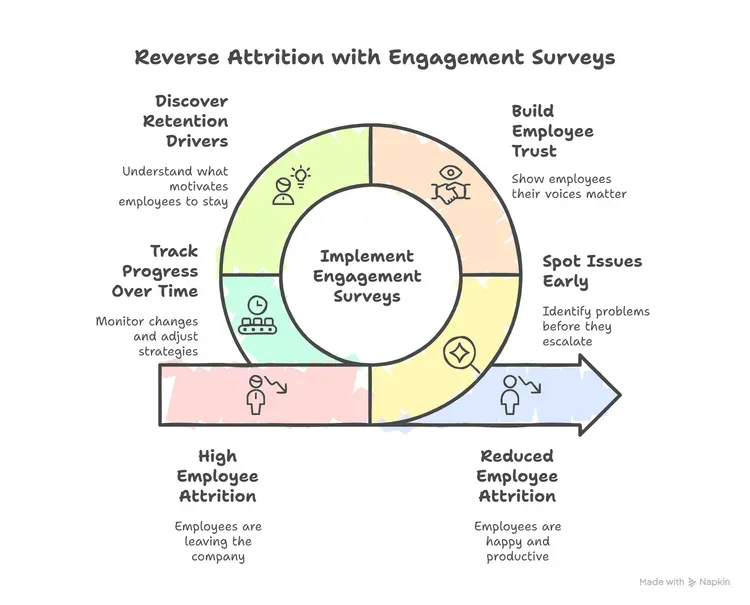 Attrition is often a symptom of disengagement. To reduce it, you need to listen to employees, identify pain points early, and act, using engagement survey tools to guide your efforts.
