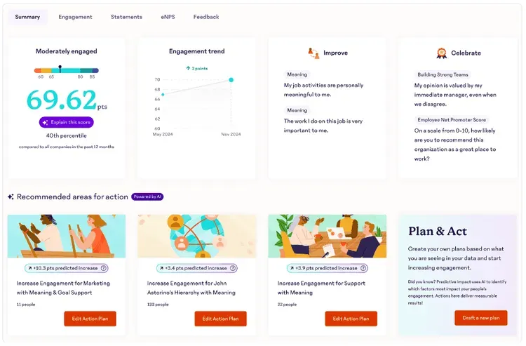 You don’t need fancy features you’ll never use. You need something simple, clear, and effective, whether that is a full engagement suite or focused pulse surveys your team will actually finish.