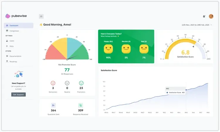 In Pulsewise, DailyMood classification helps teams track how satisfaction shifts day by day, not only when the next survey wave goes out. That kind of ongoing signal pairs well with pulse cadence: you are listening on a human timeline, not only when the calendar says “engagement survey.”
